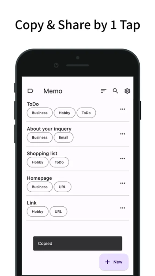 Copy and share notes with a single tap.