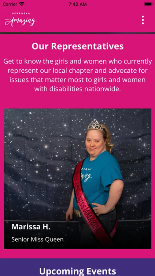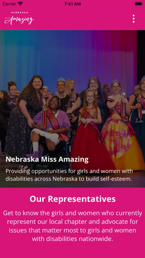Nebraska Miss Amazing provides opportunities for girls and women with disabilities across Nebraska to build self-esteem. With the Nebraska Miss Amazing app you can easily get information about the program, get information about upcoming events, and see all the fun we have at those events!