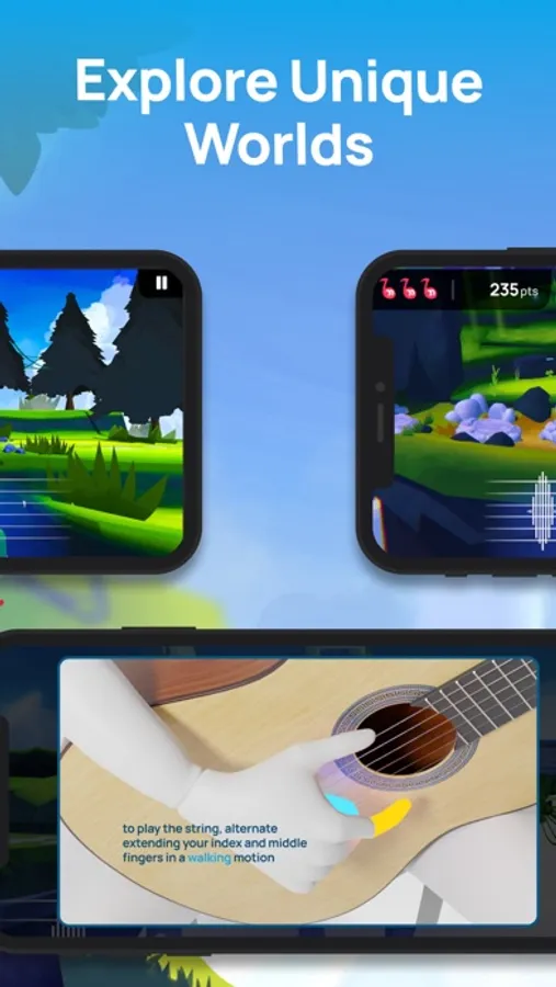 Notey's World features well-known songs and a complete curriculum designed by Grammy-nominated artists. As you conquer challenges, you'll learn how to play the guitar and read music. Collect stickers and coins as you play to unlock skins and new levels.