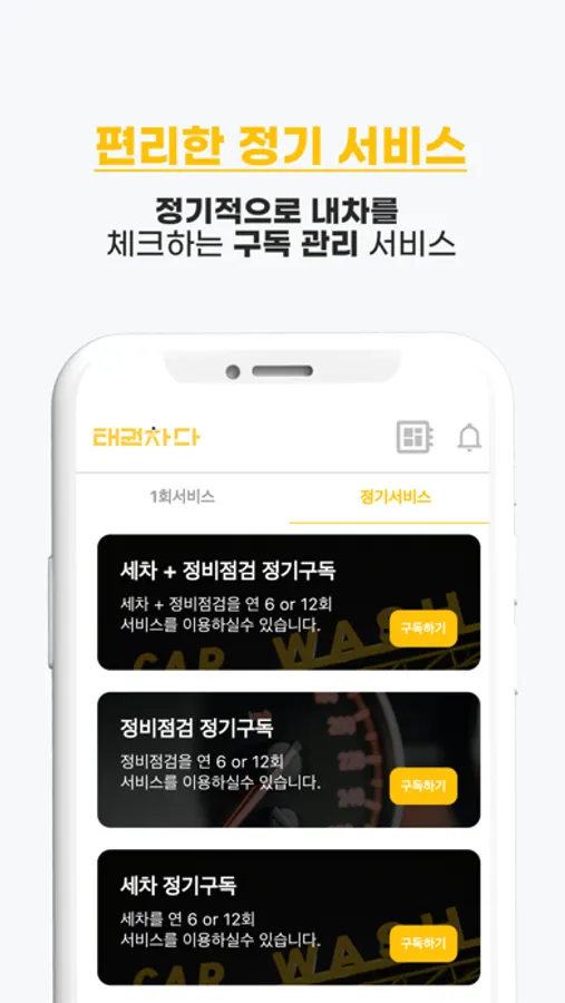 내 차에 필요한 모든 관리, 구독 서비스로 편리하게내 차 엔진오일 교체 주기, 기타 소모품 교체 주기, 정비비용 등 이제는 알아서 점검해주고 교체시기에 맞게 교체 제안해드리는 순회 구독 서비스 이용하시면서 도장운영에만 신경 쓰실 수 있도록 태권차다가 해결해 드립니다.