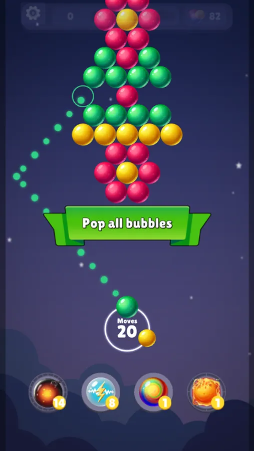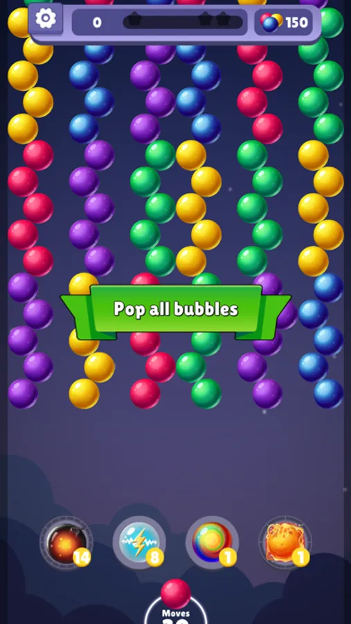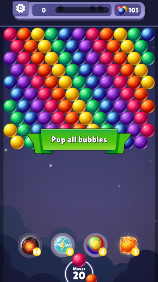 - Match with 3 or more bubbles.