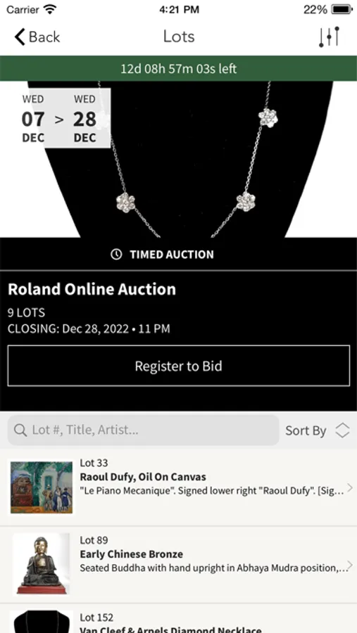 With the Roland Auctions app, you can preview, watch and bid in our auctions from your mobile / tablet device. Participate in our sales while on-the-go and gain access to our following features: