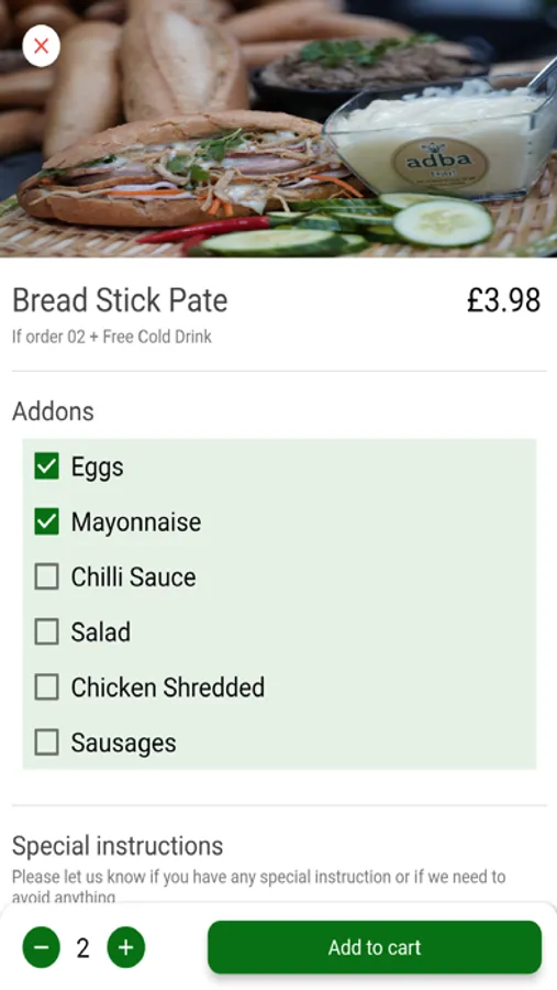 Get ready to liven up your lunch hour with a short baguette, sliced down the middle and loaded with pate, mayo, cucumber, fresh chilies, coriander and your choice of filling, from grilled chicken to marinated pork, all covered in lashings of sriracha.