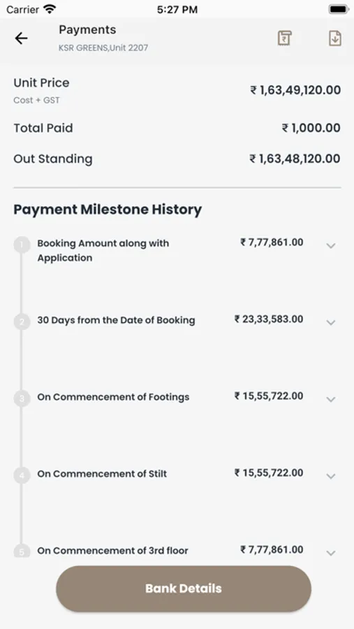 Clove Build Customer App - This will enable customers for one-stop information about all their investments with a specific real estate company. The investor or customer shall view the project progress & project-related documents like RERA approval & Legal documents, and brochures etc, payment history along with milestone details. Will have a glimpse of other projects for investors, their friends & family to explore investment opportunities.