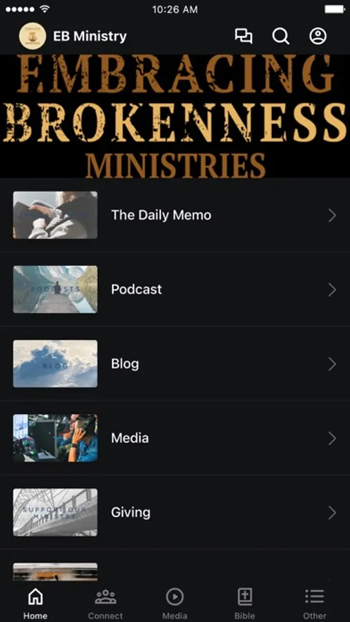 This app will help you stay connected with Embracing Brokenness Ministries. As a teaching and mentoring ministry, EBM assists those wanting to go deeper into their transformational journey with Christ; willing to be authentic and vulnerable in their own experience of brokenness in the process. With this app you can: read our Blog and Daily Memo, watch or listen to our Podcast, and Teaching; stay up to date with push notifications; share your favorite content via Twitter, Facebook, or email; and download content for offline listening.