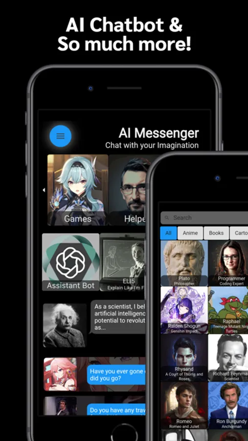 AI Messenger uses the world's most advanced language AI to simulate conversations with historic figures, characters from movies or shows, or your favorite fandom - even inanimate objects! Chat with anyone or anything your imagination can conceive of. Whether you want to have a casual chat with Sherlock Holmes or a lesson on general relativity from Albert Einstein, AI Messenger will provide you with engaging and entertaining life like conversations.