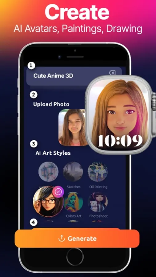 - Edit and customize your AI watch face - Create AI paintings, drawing and more with AI art