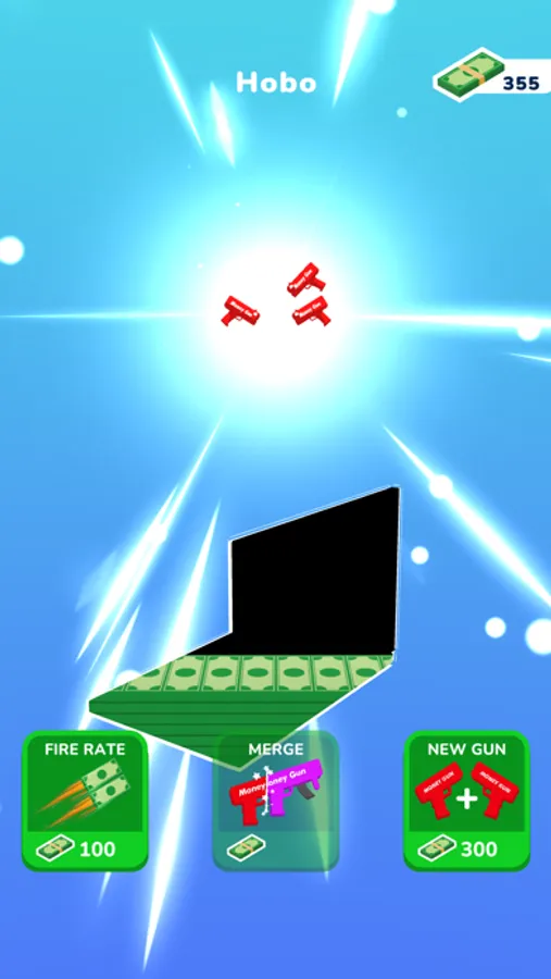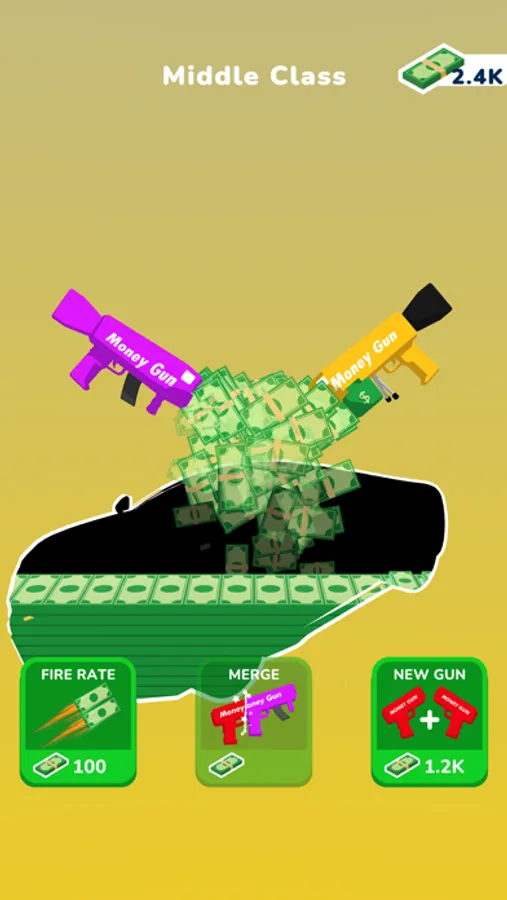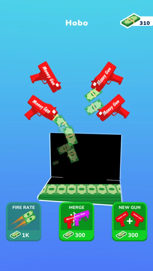 Tap and use your cash guns to earn money and collect all valuable items! Merge guns to upgrade them to next level. High level cash guns are more powerful and earn more money.