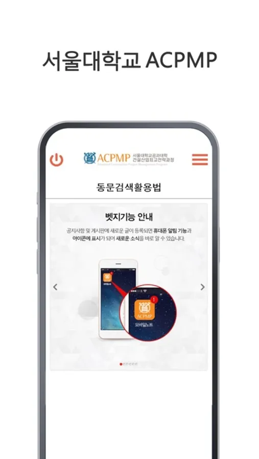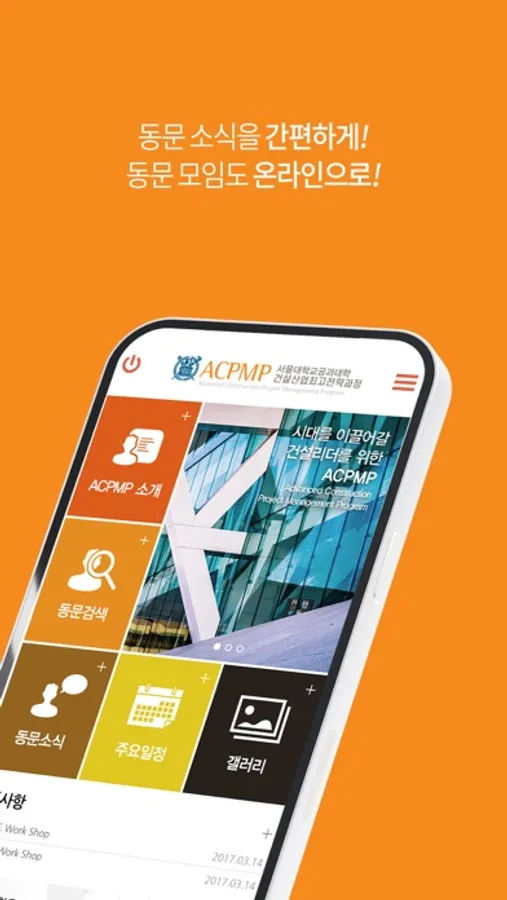 서울대학교 ACPMP 총동창회 소식과 동문 및 운영위원 정보를 열람할 수 있는 모바일 수첩 어플리케이션입니다.