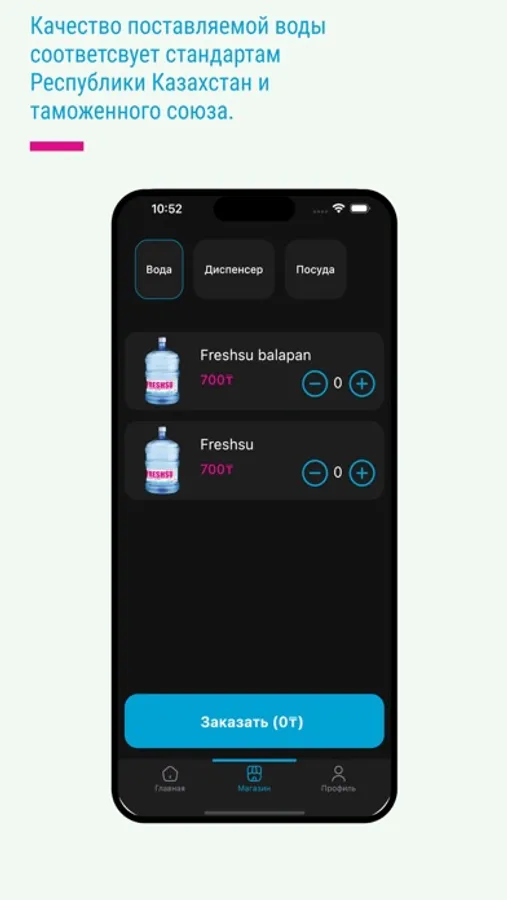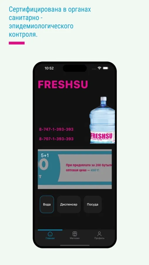 Компания «freshsu» занимается производством, доставкой и реализацией питьевой воды “freshsu” в городе Талдыкорган и Алматинской области. Компания с самого открытия и начала своей деятельности поставила высокие рамки и требования к качеству продукта и сервису обслуживания. Сам производственный цех и офис построен по новейшим технологиям строительства с использованием качественно новых материалов с ультросовременным дизайном. Предложенный комплекс сервисных услуг : онлайн заказы, call-центр, акции, многообразные ценовые предложения и продленные рабочие часы; направлен на доступность и увеличение круга потребителей чистой воды.