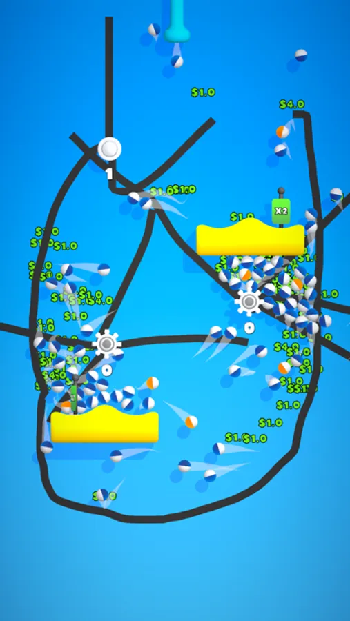 This game is so different than others! You should draw a line over the pin correctly.  You can add balls and merge them to earn more money. Don't forget, more money means more balls and more income! Guide the balls by drawing and earning money! Reach the exact amount to pass the level. If you like the balls and drawing, this game will be fun for you!