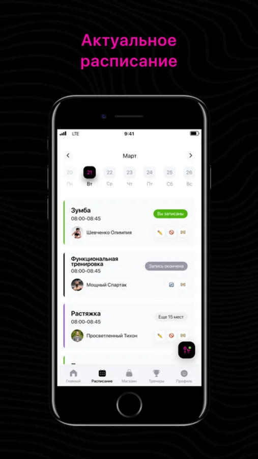 Посмотреть актуальное расписание тренировок;