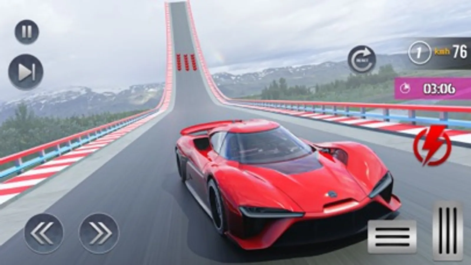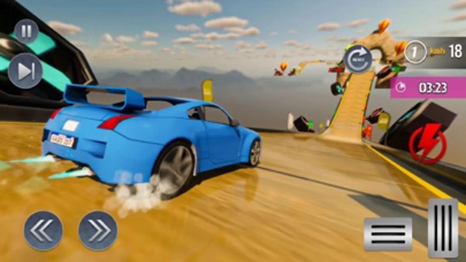 Test your driving skills in the car stunt game to become a pro driver. You will drive on multiple thrilling tracks and do stunning stunts. Save your vehicles from the different hurdles that are faced while driving. By mistake, you will touch any obstacles, then your car will crash on the mega ramp. So, you should drive very carefully on the zig-zag difficult track. You will jump and do a high stunt to reach the next ramp. Show your driving skills and complete this track within a limited time duration. If you do not reach out at a given time, then you will lose your vehicles and the level will fail. In this game, you will experience different types of dangerous mega ramps. Climb on the impossible track and smartly drive your car to save from the obstacles. Show your driving skills to become a pro driver of the stunt car. Every level is more interesting and challenging from others. Get a good driving experience on the impossible track by performing different stunts on difficult ramps. Show your driving skills as a pro driver and to do challenge your rivals. You will face lots of hurdles when driving your car on the track and save your vehicles from this obstacle. Multiple selections of the car, choose your favourite vehicle and start driving on the track.