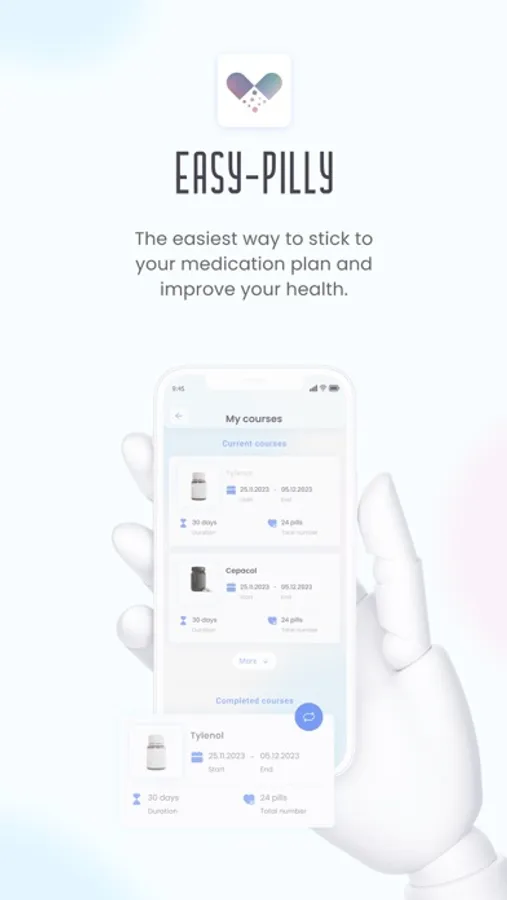 Easy-Pilly is an application for tracking medication intake that will help you not to miss a single intake. Create medication intake courses, set reminders for medication intake at the scheduled time, view your medication intake history, and take control of your health. The convenient and easy-to-use interface of Easy-Pilly allows you to easily manage your medication intake courses.