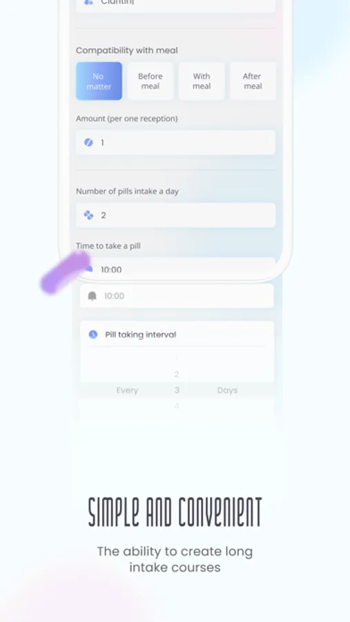 Additionally, for the user's convenience, the ability to add photos of medications and food compatibility, as well as the ability to resume a completed course in one click, is provided.