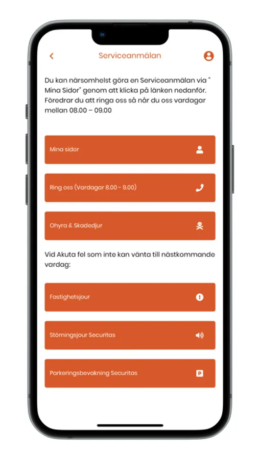Här finns bl.a. information om lediga lägenheter, hur du gör en...i telefonen om händelser som kan beröra dig som hyresgäst.