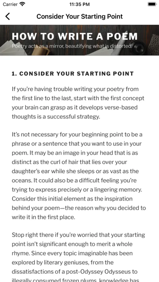 1. Use the in-app notebook for your poems, ideas, and thoughts.