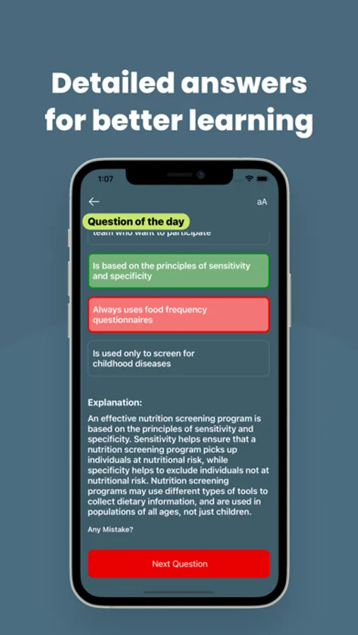 Our app features a wide range of practice questions that cover all the key concepts and topics covered on the RD exam. Each practice question includes detailed explanations to help you understand the reasoning behind the correct answer. We've also included flashcards to help you memorize important information and key terms.