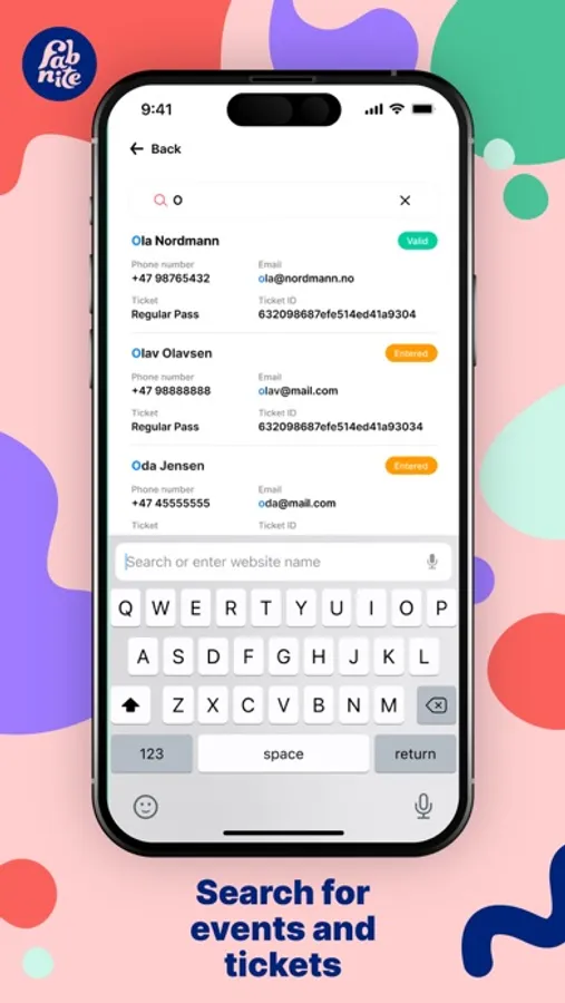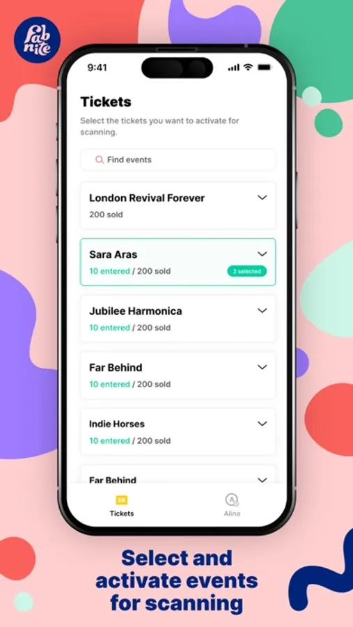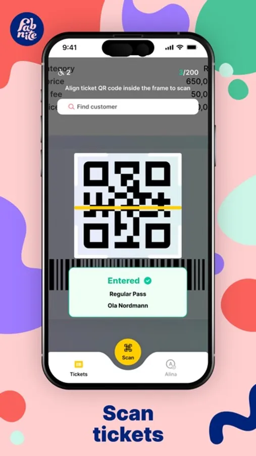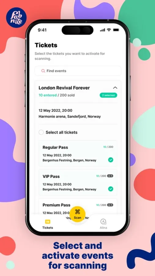 Fabnite Entry is an application specially designed for organizers of concerts, festivals and events using Fabnite. The main function is to help you keep control of the crowd flow. It efficiently scans the audience both in and out-. At the same time the system has full control at all times of how many audience members are at the event and how many tickets have been sold in different ticket categories.