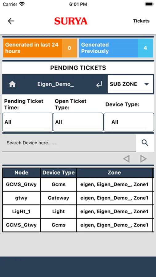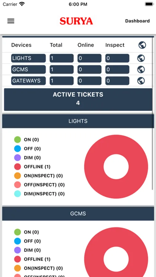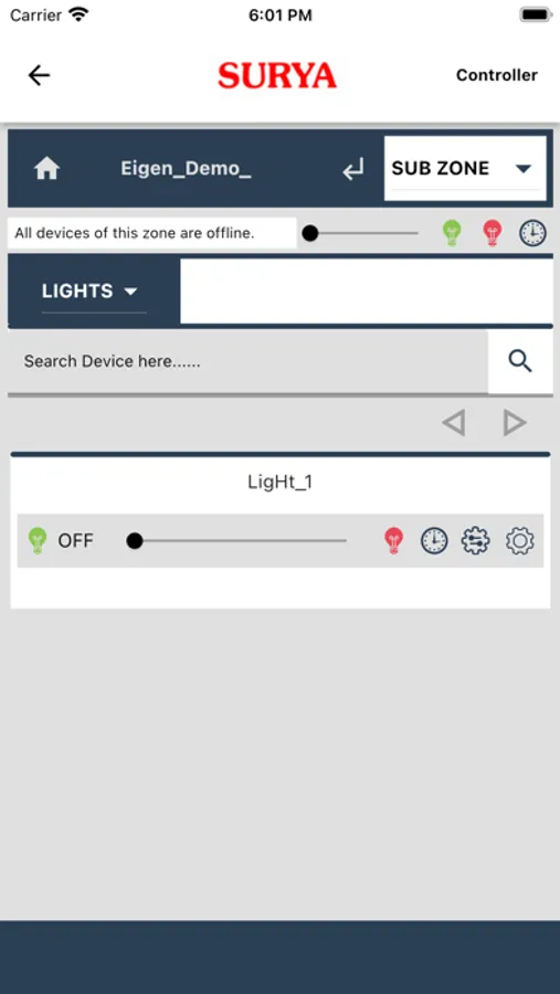 App to manage, control and analyze lights and group control feeder panels, deployed using Surya Roshni platform