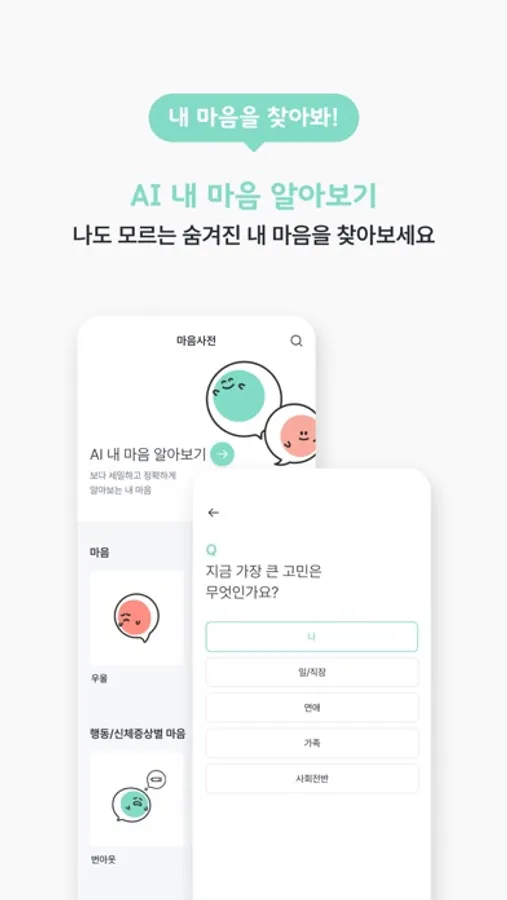 ▪ 섬세한 'AI 내 마음 알아보기'로 나도 모르는 숨겨진 나의 '마음'을 찾을 수 있어요.