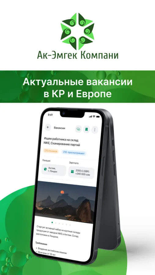 Мобильное приложение "Ак-Эмгек Компани" - ваш надежный помощник в поиске работы в Кыргызстане и странах Европы, обеспечивая удобный доступ к вакансиям и возможность общения между работодателями и соискателями.