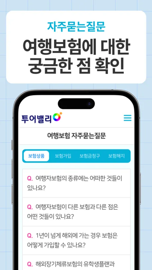 지금 바로 투어밸리 여행자 보험 앱을 만나보세요!