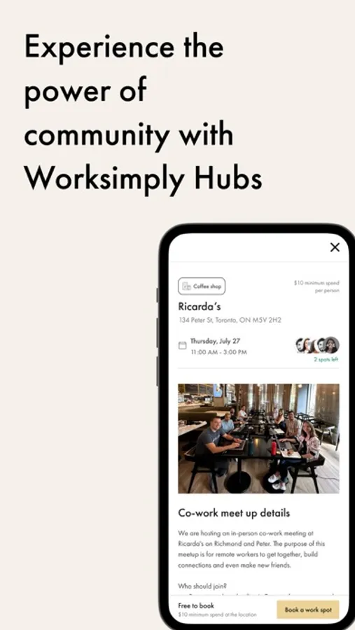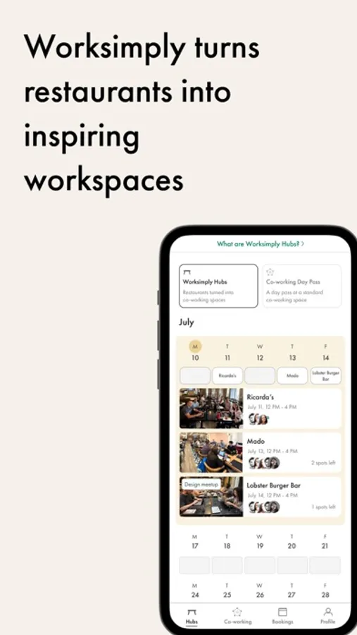 Worksimply is a platform focused on connecting remote professionals to co-working Hubs at restaurants, community, and experiences.