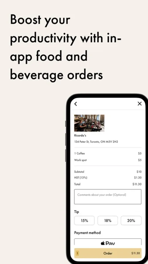 3. Check in, order, and get to work. Check-in and conveniently order and pay from within the app.