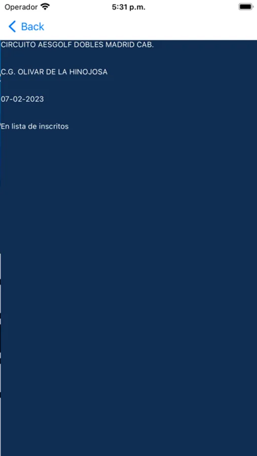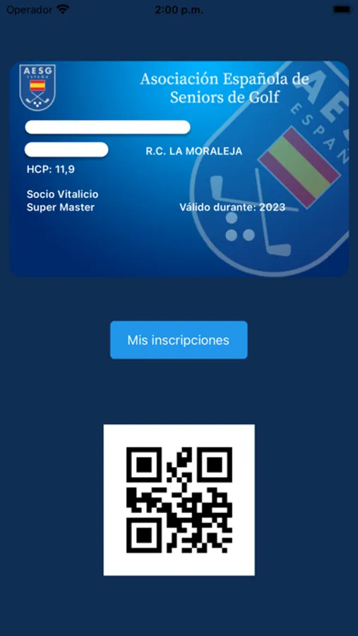Esta aplicación servirá como carnet virtual de la Asociación Española Seniors de Golf, además desde ella podremos consultar los torneos en los que estemos inscritos así como nuestros datos: club, handicap, tipo de socio...etc