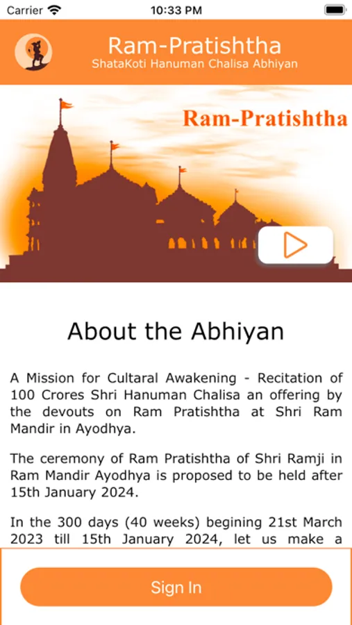 Ram-Pratishtha App has been created for the excellent execution of Shatakoti Shri Hanuman Chalisa Path Abhiyan related to the establishment of Lord Shri Ram in Shri Ram Mandir, Ayodhya. This content is available in 12 languages.