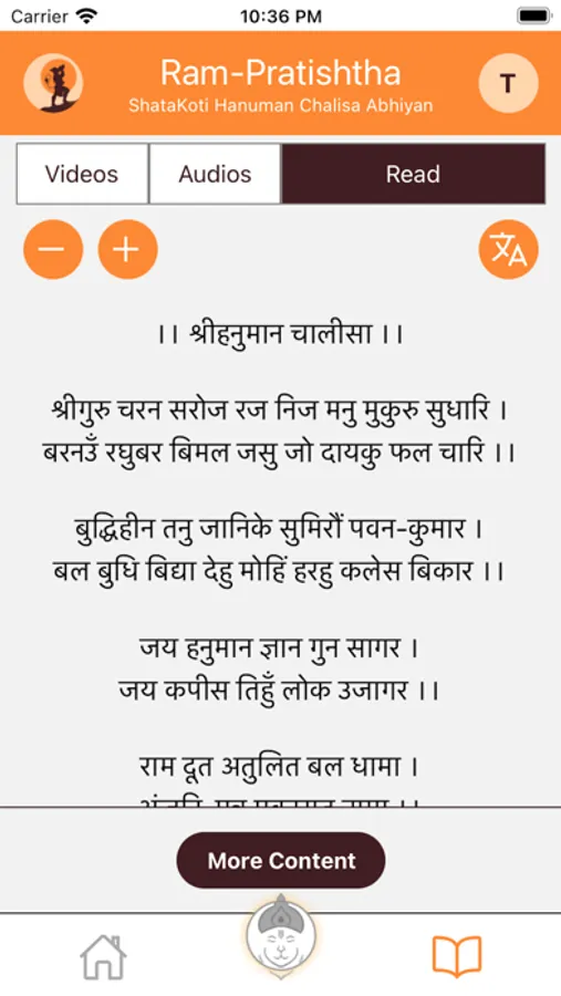Access to Videos, audios, and text (in 12 languages) of Shri Hanuman Chalisa