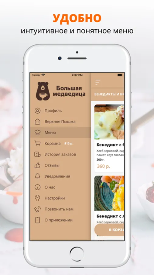 Воспользуйтесь удобным приложением для заказа еды «Большая медведица».