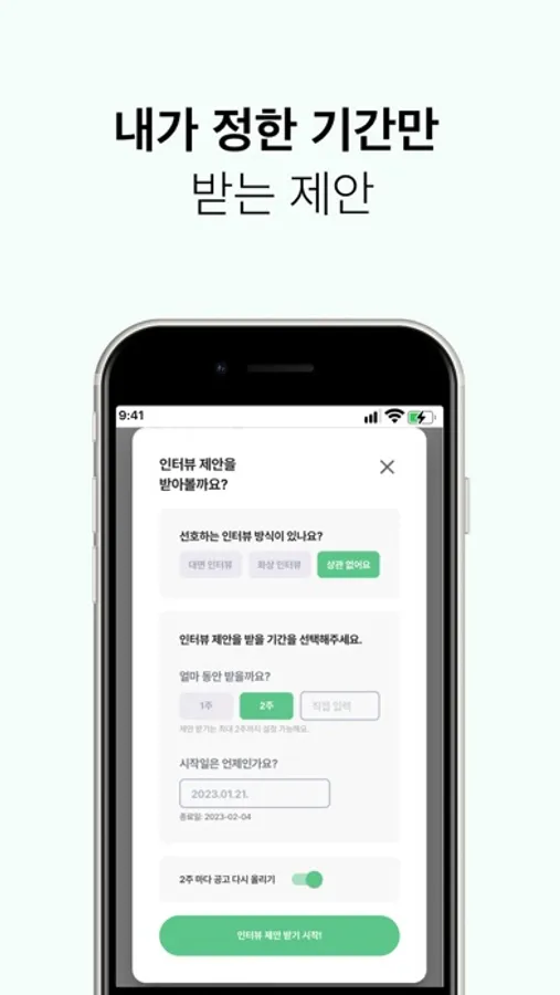 내가 원하는 기간 동안에만 인터뷰 제안을 받으세요.