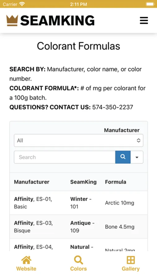 Colorant Formula*: # of mg per colorant for a 100g batch.