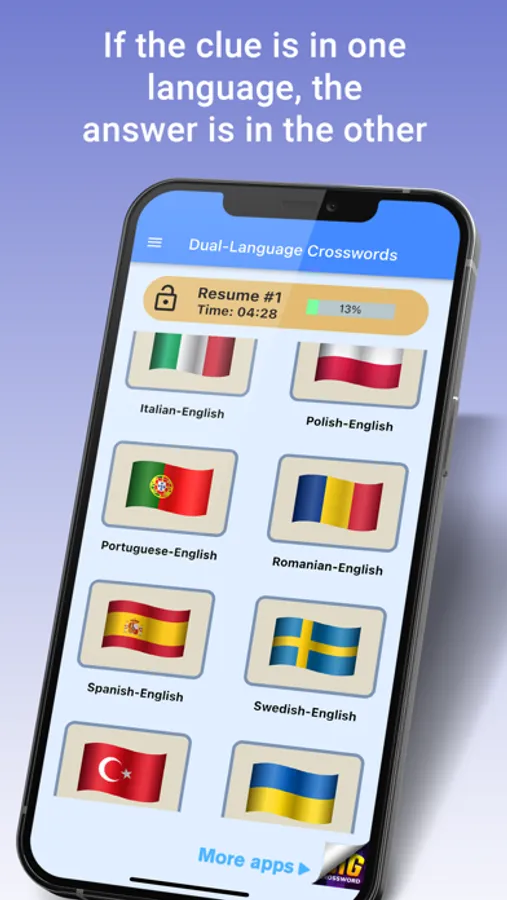 All the crosswords have mixed-language clues and answers within the same crossword.