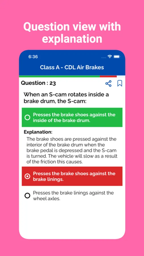 Our app includes a variety of practice questions for the Driver's license exam for Commercial Vehicles. These questions are based on the official handbook of different states.