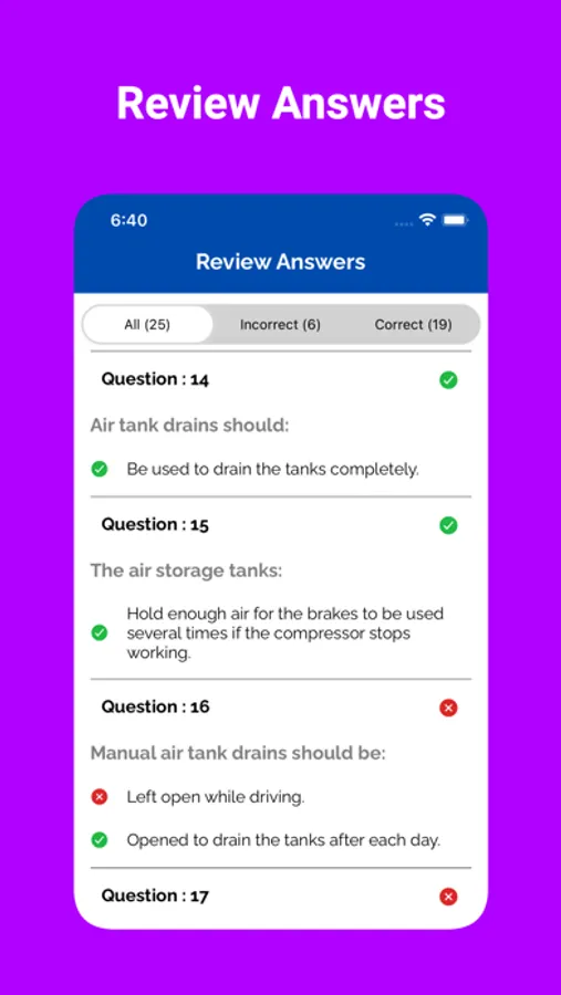 In addition, the app provides a list of weak questions based on practice tests on CDL Prep Test.