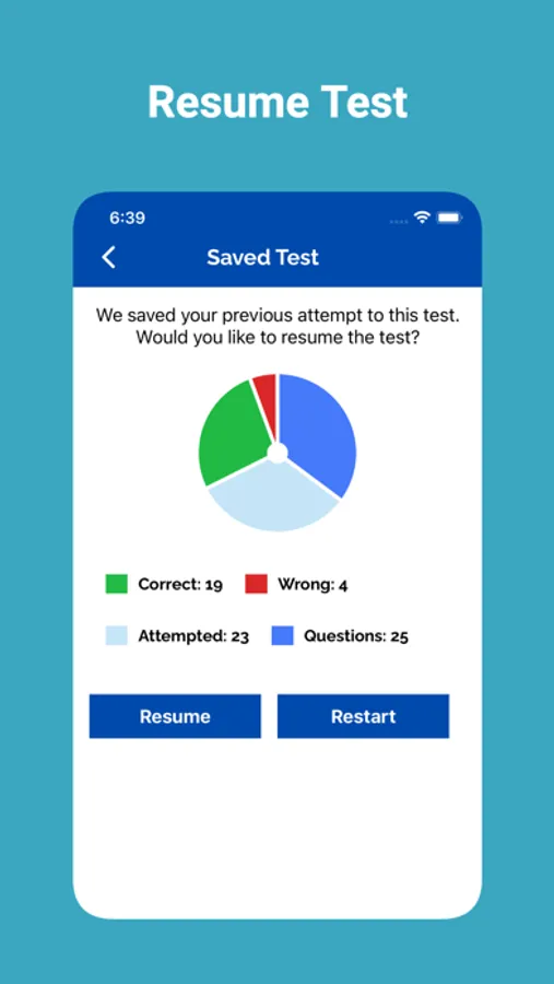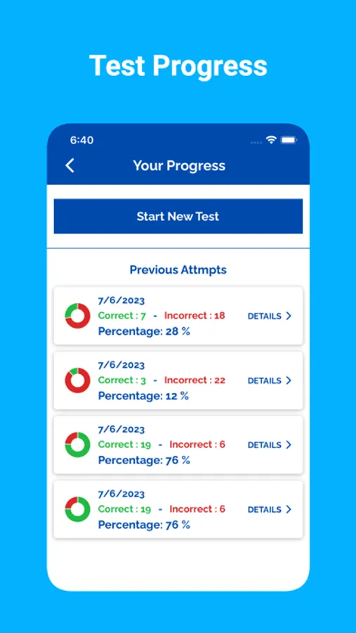 App tracks the users completed practice tests. The app tracks their progress, allowing them to identify areas for improvement and track their overall progress.