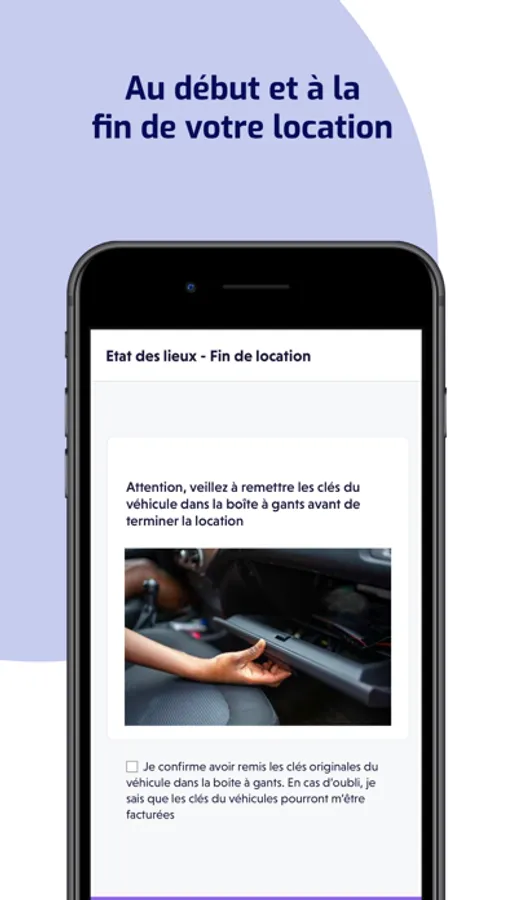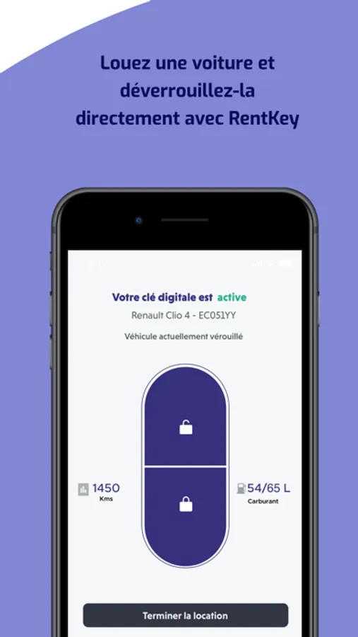 La clé digitale de votre voiture de location. Accédez à votre réservation avec votre référence de réservation, faites l'état des lieux du véhicule, déverrouillez le véhicule en un clic et vous n'avez plus qu'à profiter de la route.