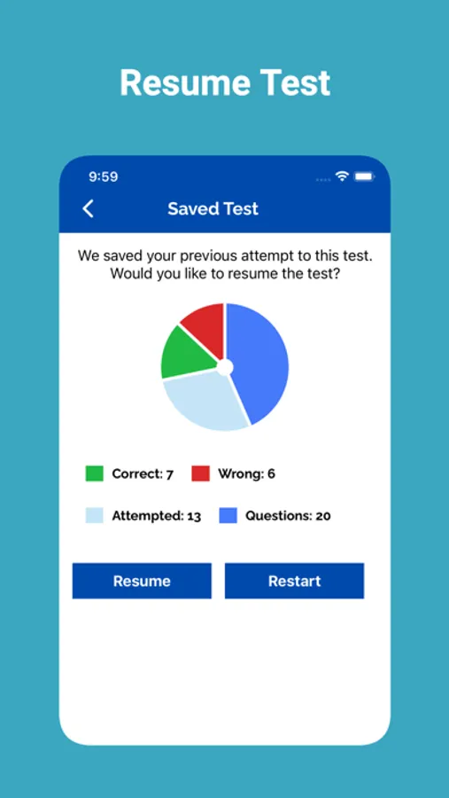 App tracks the users completed practice tests. The app tracks their progress, allowing them to identify areas for improvement and track their overall progress.