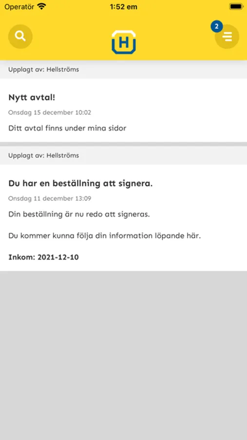 Det här är Hellströms-APPEN, speciellt framtagen för att förenkla kommunikationen för kunder och medarbetare hos Hellströms.