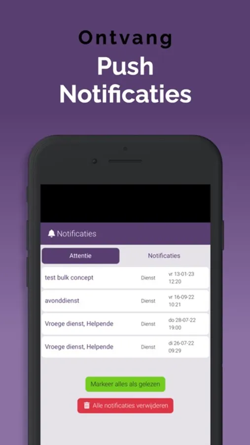 De App is gekoppeld aan het systeem waardoor informatie altijd up-to-date is, via een overzichtelijk dashboard. Bovendien komen belangrijke meldingen, als nieuw beschikbare opdrachten, via een push melding binnen op het apparaat. Zo zie je niets over het hoofd. Ook wijzigingen worden direct zichtbaar, ook in de agenda. Je bent dus altijd op de juiste plaats aanwezig.