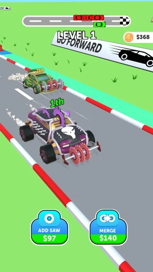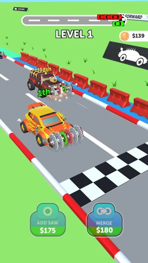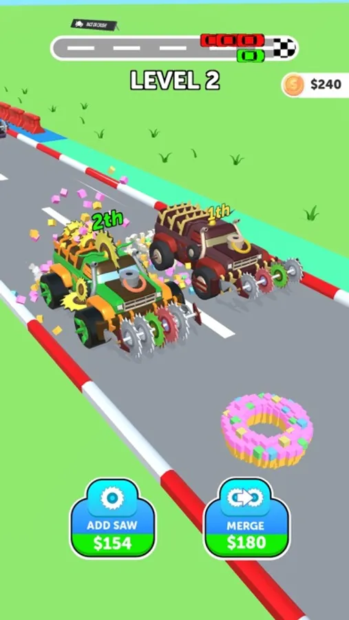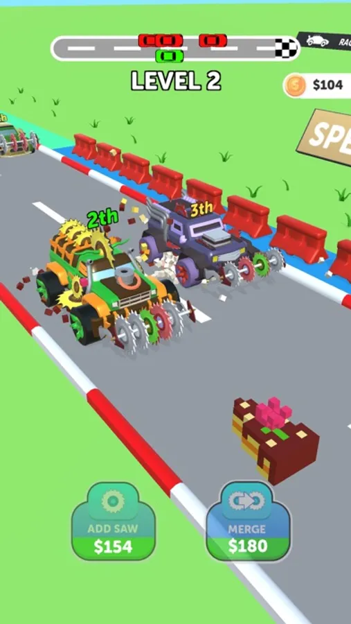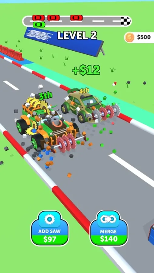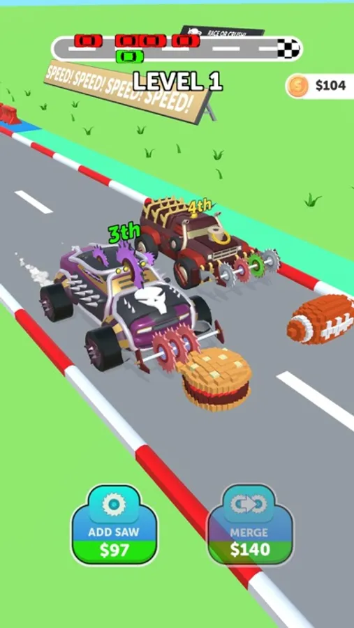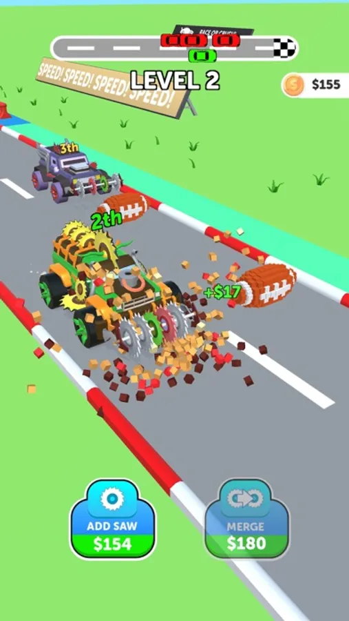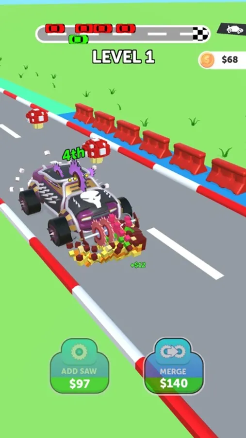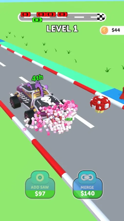 Speed up your car, smash the voxels and win the race, then upgrade your car to a monster truck!