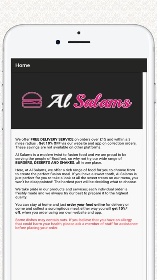 We offer FREE DELIVERY SERVICE on orders over £15 and within a 3 miles radius . Get 10% OFF via our website and app on collection orders. These savings are not available on other platforms.