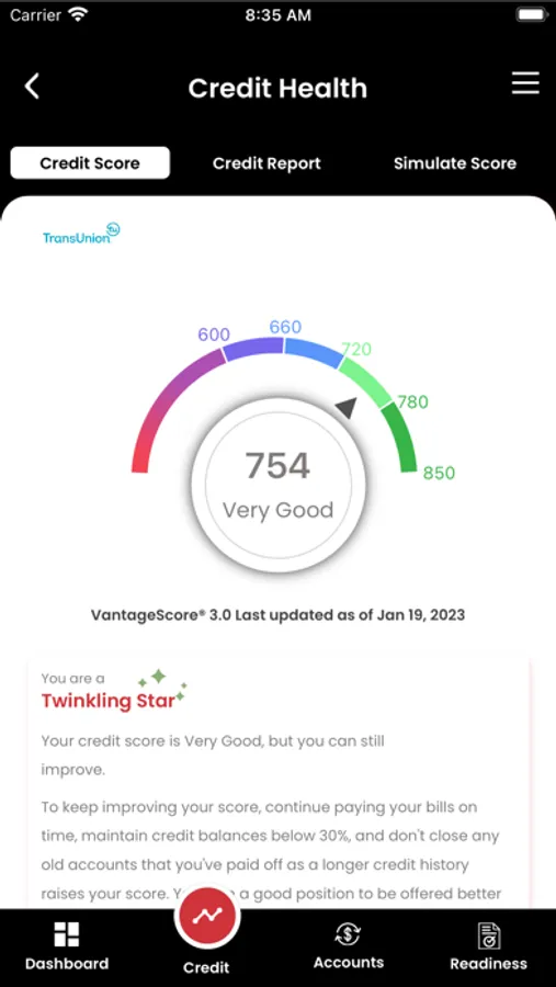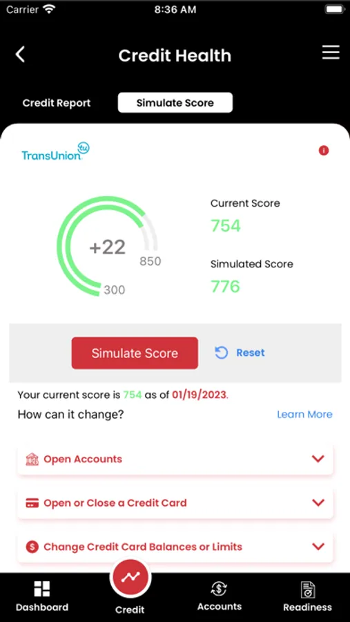 Your credit score is prominently displayed in your dashboard - and it doesn't cost you anything. Track changes month to month and learn the key factors that make up your score like length of credit, timely payment history, utilization of credit, total accounts opened and inquiries. Don't worry, this is a "soft credit pull" meaning there is no impact to your score by checking it. Look through your credit report for accuracy. Access helpful articles that explain credit bureaus, credit score, and more.