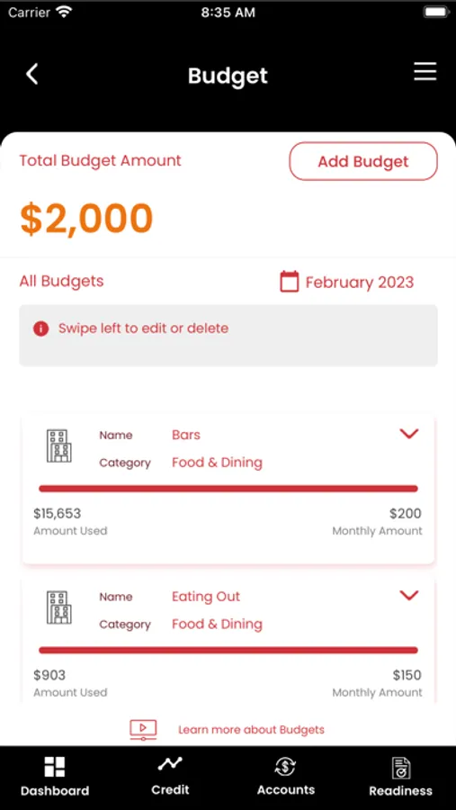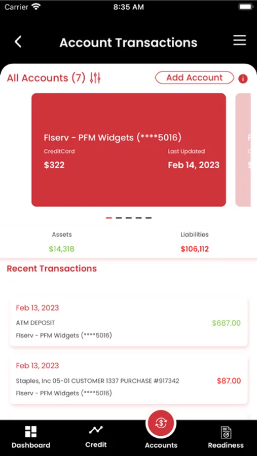 Your FinReady dashboard summarizes important financial information such as: account balances, transactions, net worth, budgeting, credit score, cash flow analysis, estimated home value, spending analysis, offers and promotions from your financial institution, and an information center with personal finance articles and videos, all in one place.