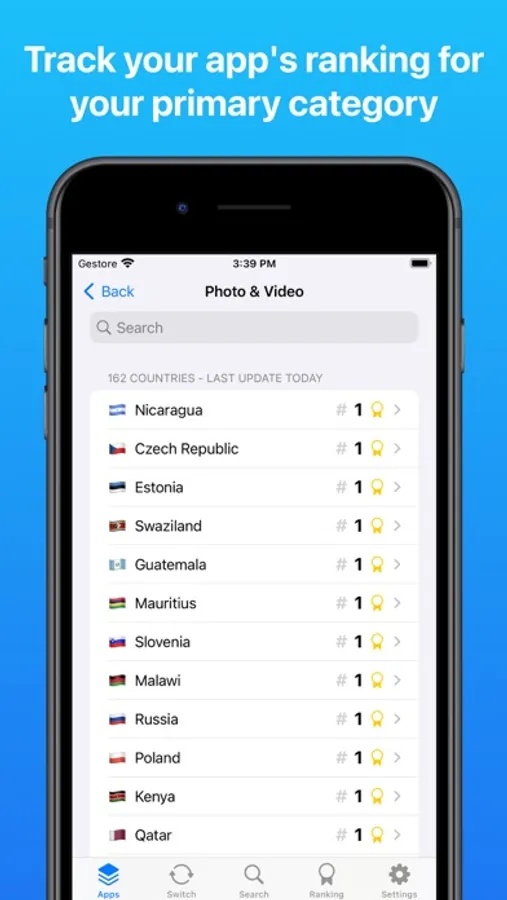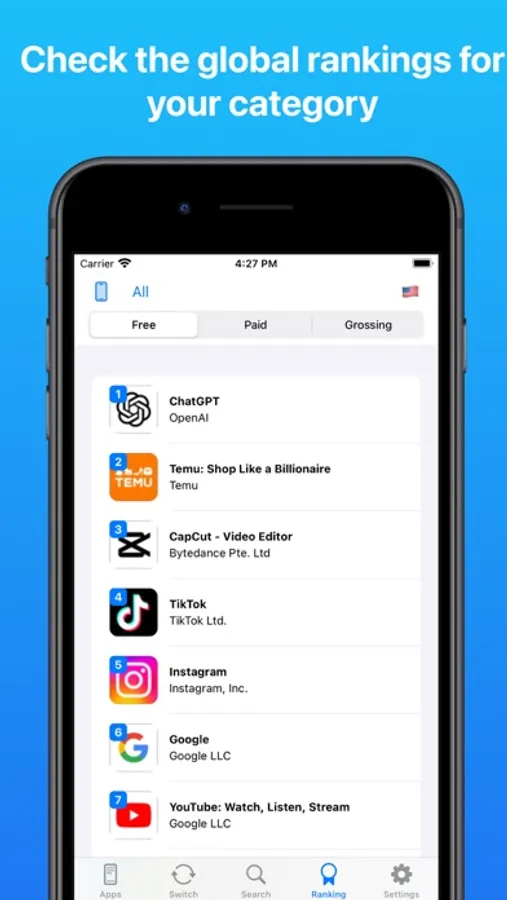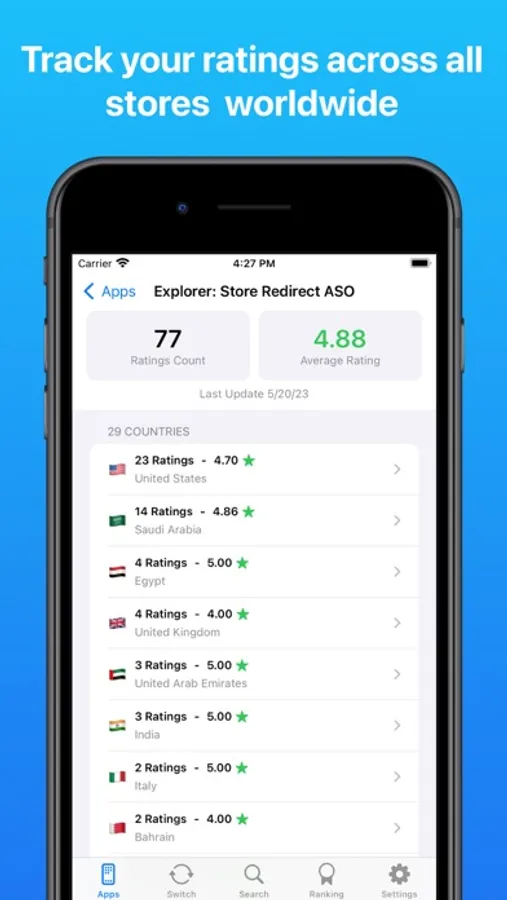 - View the app store rankings in all countries of the world