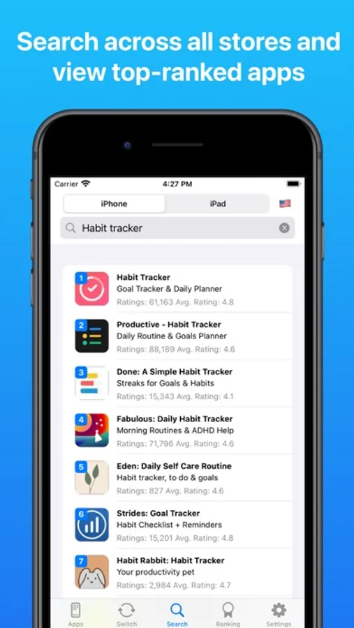 - Quickly search for apps across all stores for both iPhone and iPad