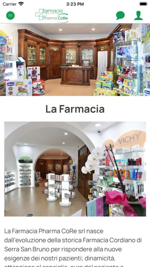 L'App della Farmacia Pharma Core di Serra San Bruno ti permette di avere il tuo farmacista di fiducia sempre a portata di mano con consigli, informazioni, prenotazioni, ordini, richieste di prodotti e servizi in farmacia.